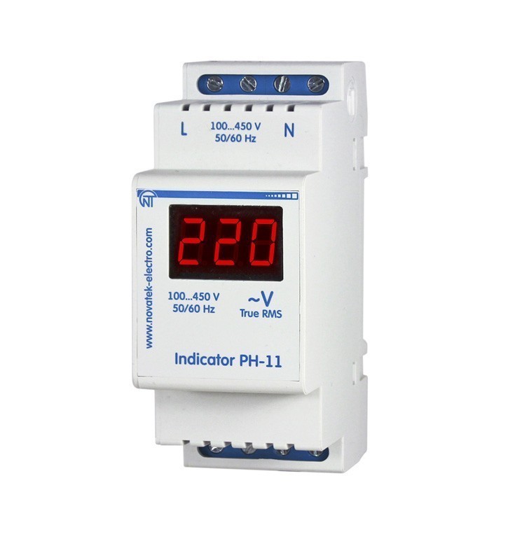 РН-11 предназначен для измерения и индикации действующего значения напряжения однофазной сети. Измеряемое напряжение, подаваемое на клеммы L, N изделия одновременно является напряжением питания.