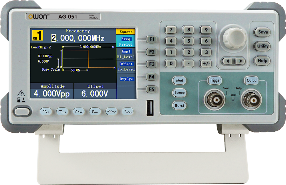 OWON AG051 представляет собой многофункциональный генератор, объединивший в одном приборе функциональный генератор и генератор сигналов произвольной формы.