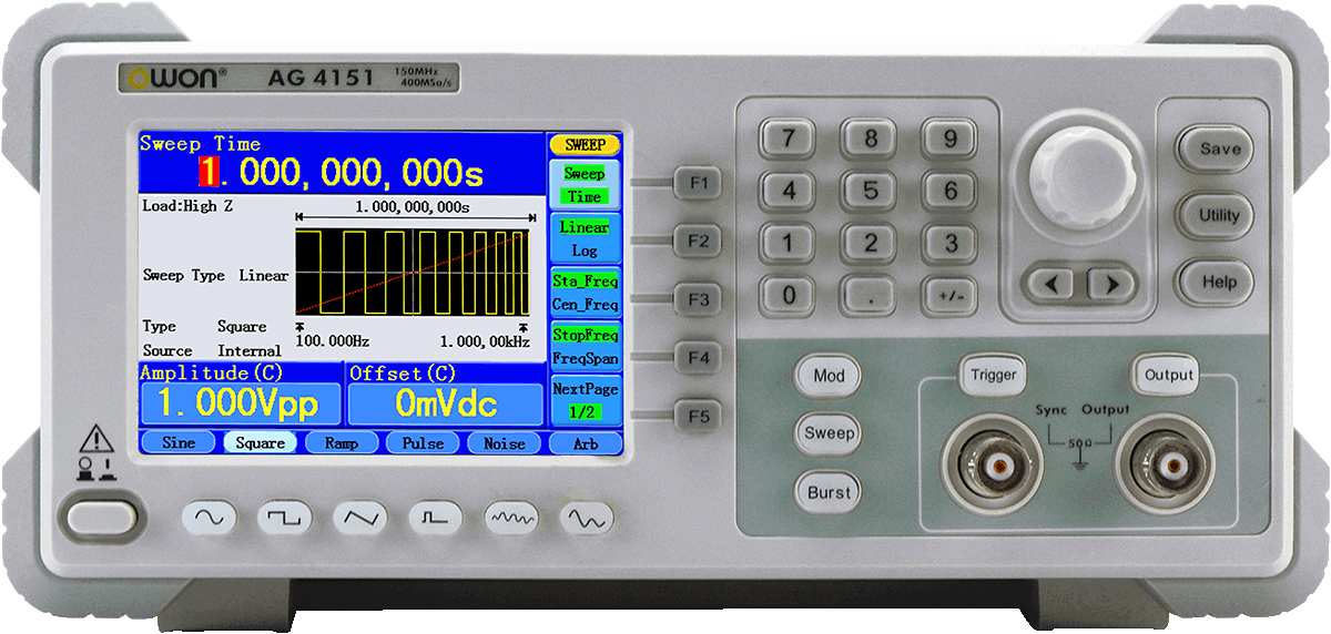 OWON AG4121 представляет собой многофункциональный генератор, объединивший в одном приборе функциональный генератор и генератор сигналов произвольной формы.