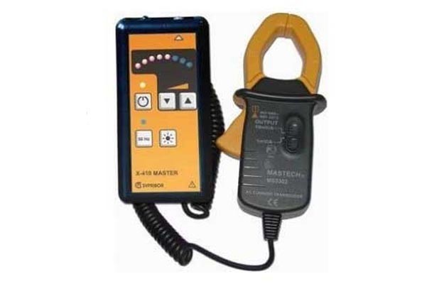 X-410 Master. Отборник кабеля "свой-чужой" диаметром до 29 мм. Замкнутый магнитопровод отборника позволяет безошибочно отбирать свой кабель в пучке кабелей. Отбор кабеля производят по сигналу генератора ГК-310А-2 или ГК-мини. Генератор подключают к жиле или экрану (оболочке) кабеля, которые заземлены на дальнем конце. Другой вывод генератора подключают к земле. Сигнал от генератора протекает по жиле (экрану) на землю через заземление на дальнем конце и через емкость "экран-земля". По соседним заземленным кабелям часть тока возвращается на станцию к генератору.