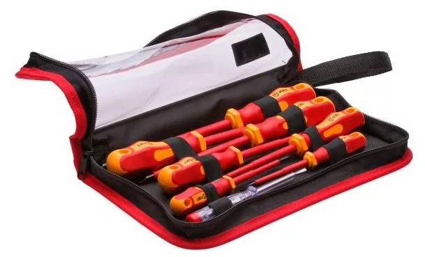 Универсальный набор отверток для проведения ремонтных и обслуживающих работ в электросетях. Инструмент обладает качественной изоляцией и подходит для проведения работ под высоким напряжением — до 1000В.