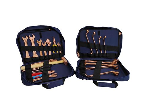 Набор искробезопасных ключей КИБО®- 29 предназначен для разного рода регулировочно-монтажных работ по обслуживанию газо- и нефтепроводов и любых других систем, где проходит опасная газообразная либо жидкая среда (в подземных выработках шахт и рудников и т.п). Инструмент покрыт слоем меди толщиной 30 мкм. Медное покрытие позволяет смягчать удары и препятствовать искрообразованию.