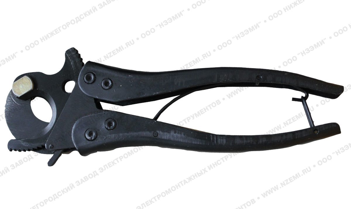 При перерезании длинных кусков кабеля или провода: а) вывести подвижный нож из зацепления с собачками качанием подвижной рукоятки или поворотом подвижного ножа против часовой стрелки (в последнем случае необходимо предварительно отвести фиксирующую собачку и подвижную рукоятку до упора, освободив, при этом подвижный нож); б) подвести неподвижный нож снизу к перерезаемому кабелю и повернуть подвижное лезвие по часовой стрелке до упора в кабель, при этом собачки должны войти в зацепление с подвижным лезвием; в) произвести перерезание кабеля подачей подвижного ножа путем качания подвижной рукоятки. При перерезании коротких кусков кабеля или провода следует установить подвижное лезвие так, чтобы отверстие между лезвиями соответствовало диаметру кабеля или провода, затем завести кабель в это отверстие и перерезать. По окончании работы протереть ножницы.