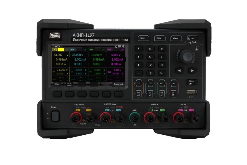 | Особенности | дискретность установки 1 мВ/ 0,1 мА. Выходные клеммы на передней и задней панели. Вольтметр и амперметр – 5 разрядов. Внутр. память настроек -10 групп (х3 параметра). Режим параллельного/ последовательного объединения, автотрекинг каналов (Кан1/ Кан2). Расширенные функции - сложный профиль Uвых (List), задержка/Delayer, отображение формы напряжения и тока/ Monitor, USB-регистратор выходных параметров/Recorder (8 кВыб/с). Удаленное подключение нагрузки (4-пр схема Sense +/-). Режимы стабилизации тока и напряжения (CC/ CV). Защита от перенапряжения, перегрузки по току и перегрева (OVP/ OCP/ OTP). Низкий уровень шумов и пульсаций ( |