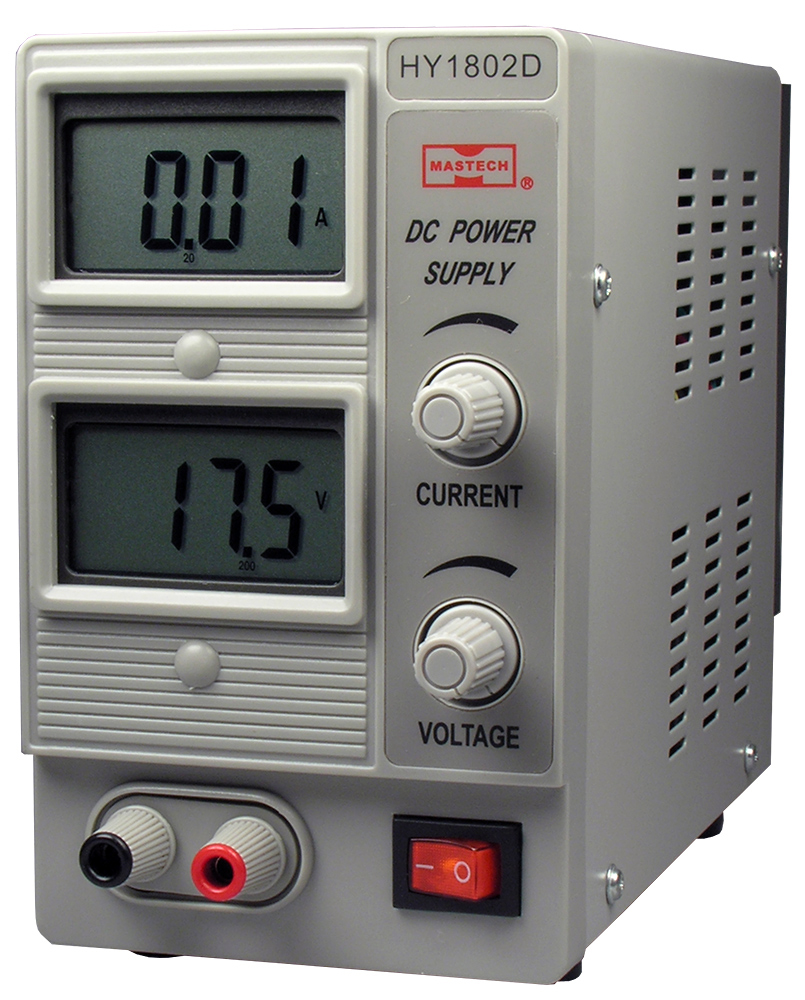 Mastech HY1802D – источник питания, позволяющий получать регулируемое, точное и стабильное постоянное напряжение или постоянный ток. Два регулятора тока и напряжения обеспечивает точность установки, а цифровые жидкокристаллические индикаторы тока и напряжения упрощают считывание параметров выхода.