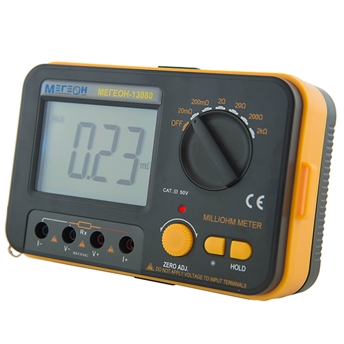 Милиомметр Мегеон 13080 идеально подойдет для измерения сопротивления следующих устройств: контакты силовых резисторов, печатных плат, антенн, кабелей, электрических станков, катушек разгона и другого электрооборудования.