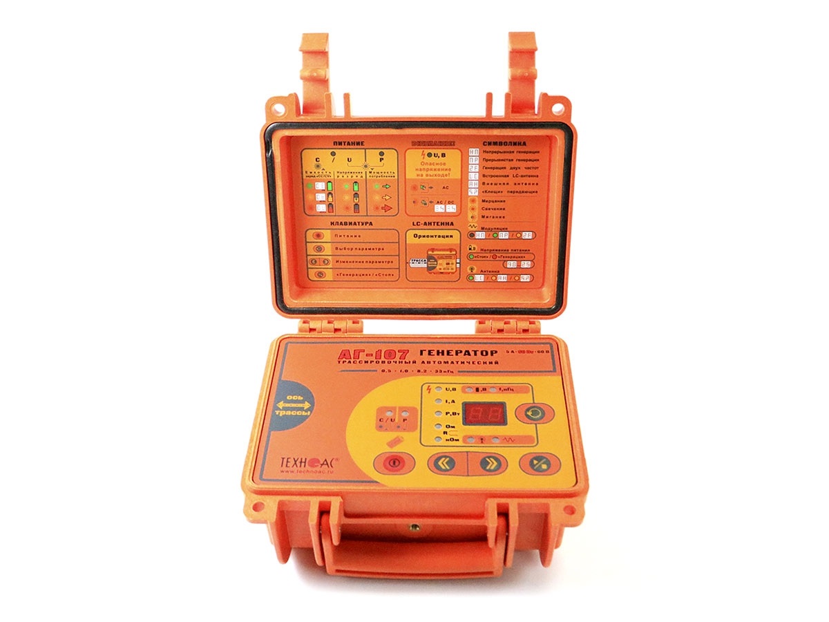 Генератор АГ-107 незаменим для создания переменного тока в электропроводящих коммуникациях при электромагнитном методе трассопоиска.
