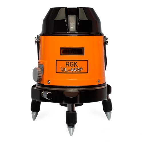 Корпус RGK UL-443P выполнен из качественных материалов и обеспечивает надёжную защиту прибора от строительной пыли и влажности. Питание прибора осуществляется от стандартных батареек типа АА. Прибор поставляется в ударопрочном кейсе.